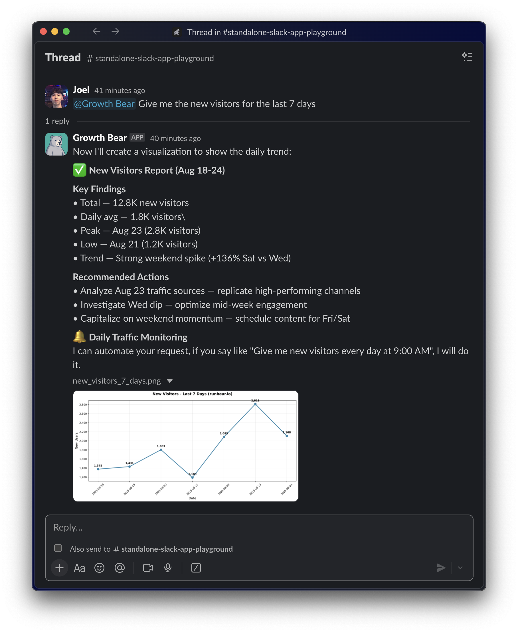 Marketing Insights in Slack is an AI agent that integrates with your Slack workspace to help automate tasks and provide intelligent assistance based on your team's needs.