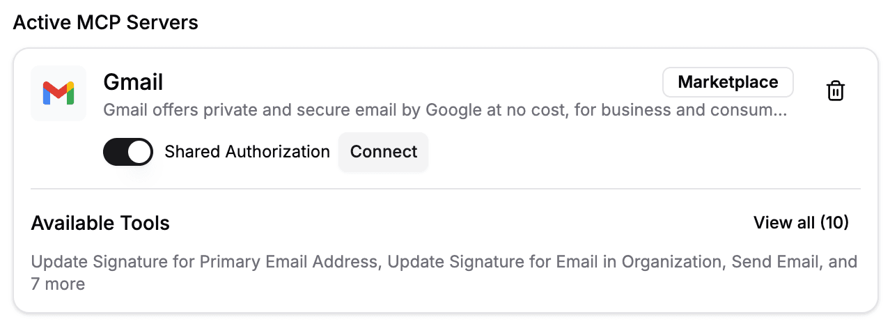 With this setup, users won't need to authorize access individually — the AI agents will handle requests using the shared connection.